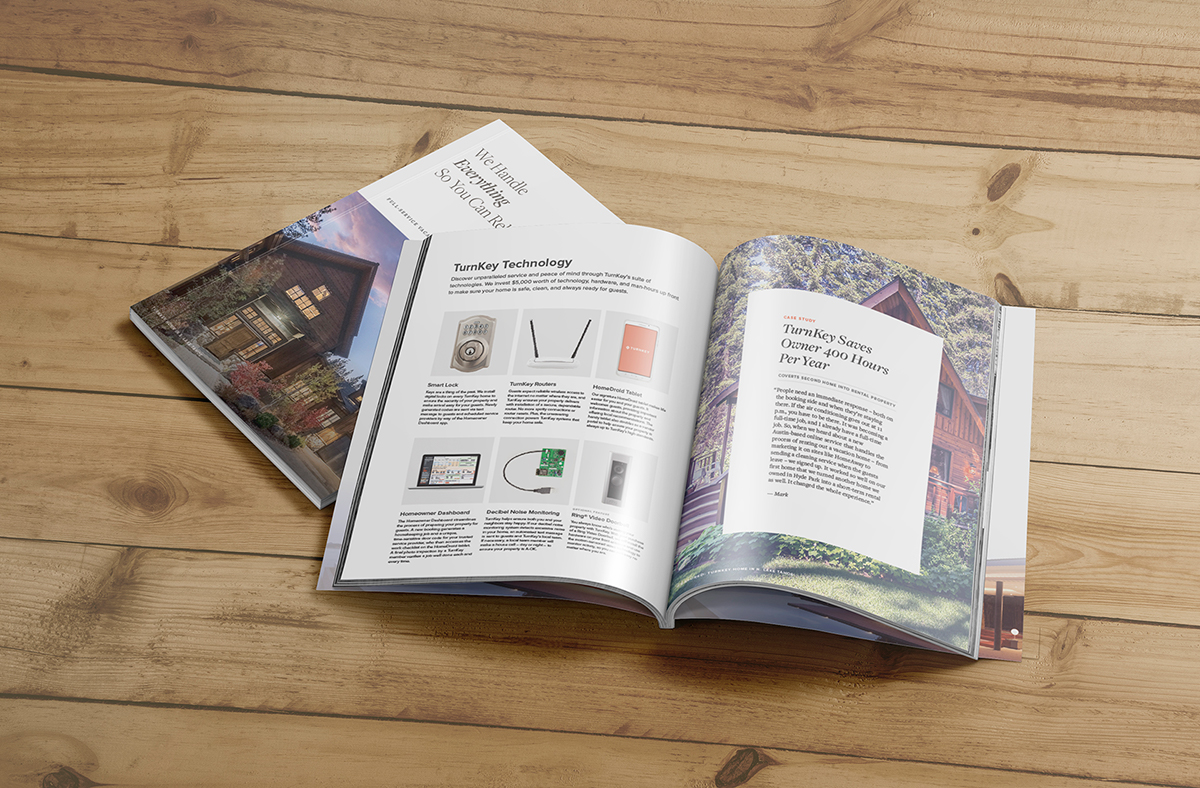 I worked with TurnKey's CEO, COO and other sr. stakeholders to lead a 12-month reimagining of the entire TurnKey brand. Working as both an art director and individual contributor, I was able to touch every part of TurnKey's visual brand – eventually leading to an acquisition by industry leader Vacasa.